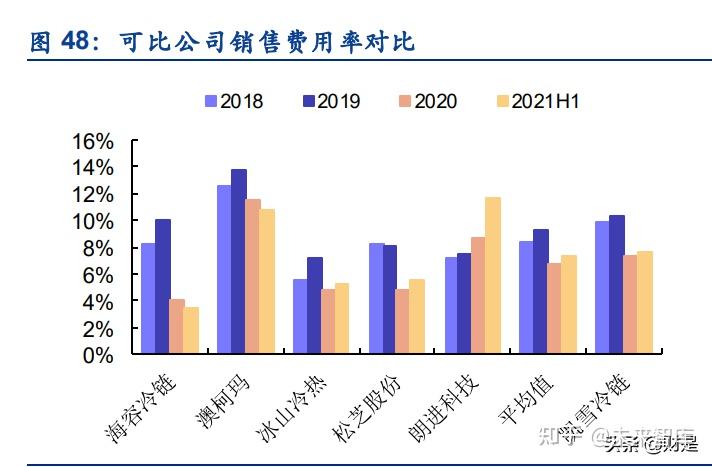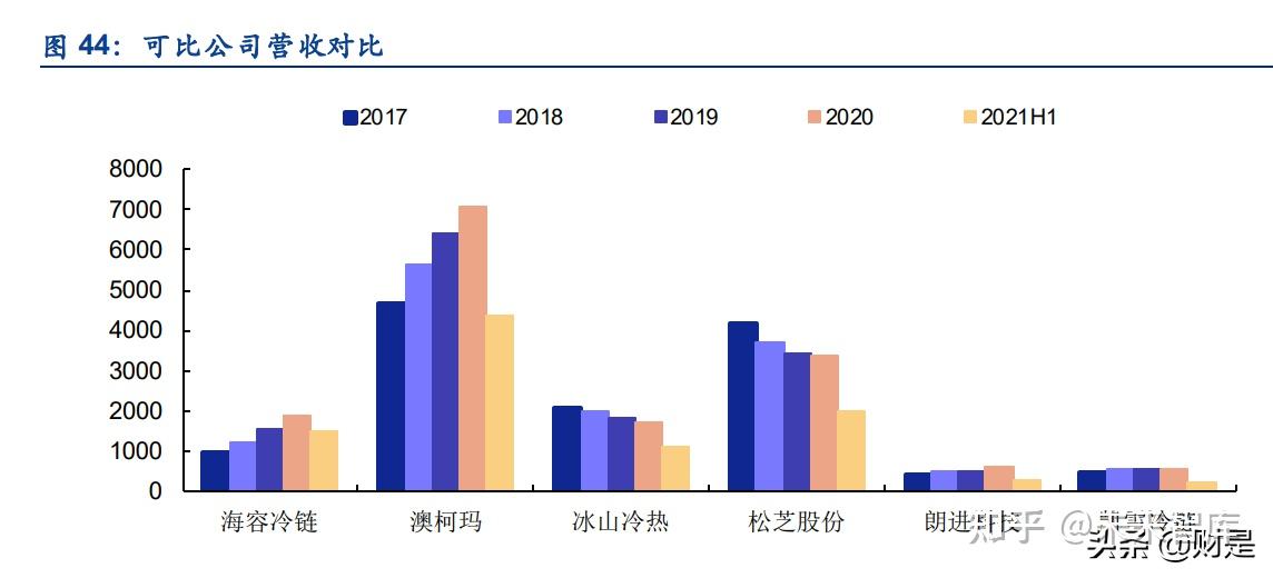 公司歸母凈利潤與可比公司差距相對較小,公司 2020 年歸母凈利潤為 7148 萬元,可比公 司中最高的為澳柯瑪,2020 年為 3.10 億元,其次是海容冷鏈和松芝股份,2020 年分別為 2.68 和 2.47 億元。