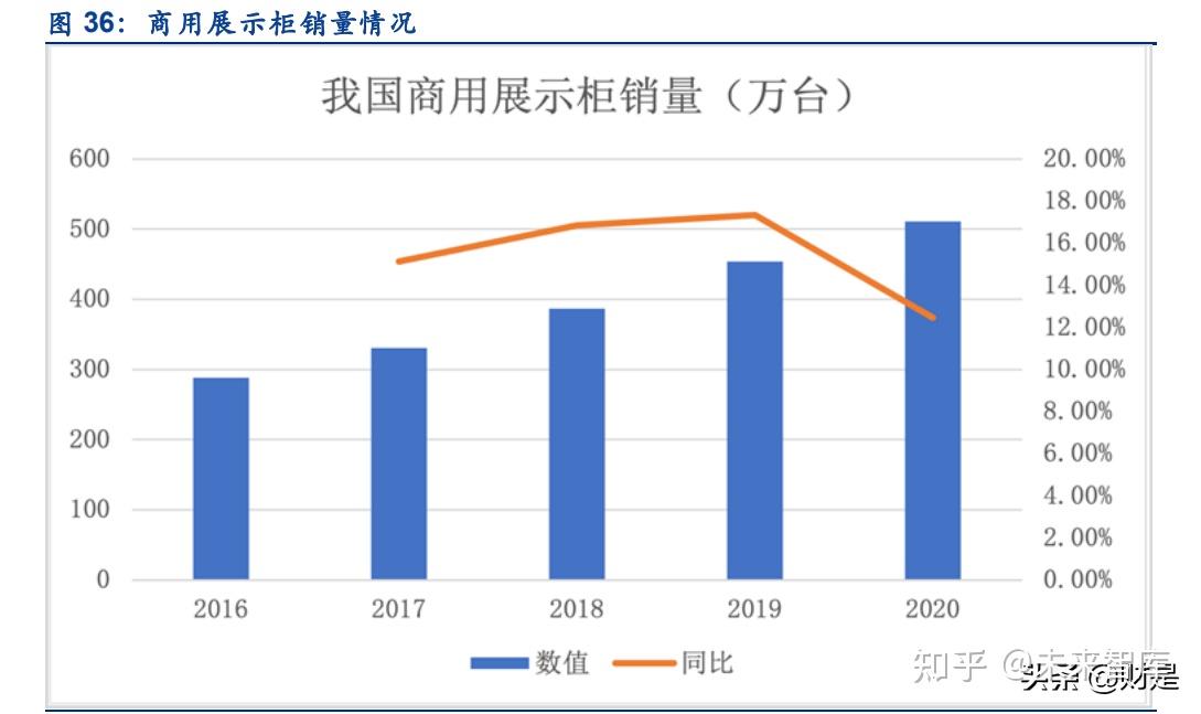 根據中經視野數據,2020 年我國商用展示柜銷量達到 511 萬臺。2017 年至 2020 年商用 展示柜銷量增速分別達到 15.12%、16.86%、17.35%和 12.46%。伴隨著我國整體冷鏈行 業的發展,商用展示柜下游市場空間預計將穩步增長,根據中經視野數據,預計 2025 年商 用展示柜市場規模達到 856 萬臺。