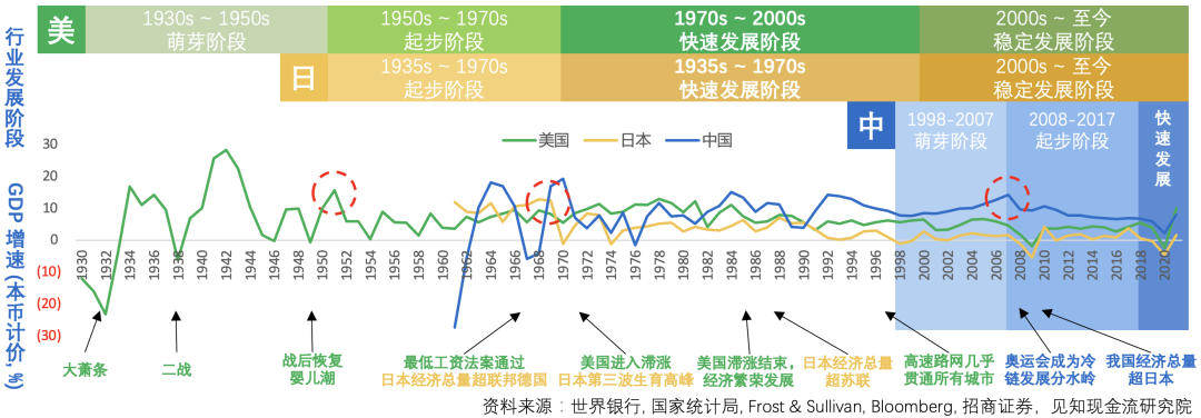 對比中美日的歷史階段,當前中國經濟總量世界第二,高速路網不斷完善,居民勞動力成本和生活水平均不斷上升,以及電商帶來的消費升級不斷深化。以上背景為冷鏈物流行業的快速發展提供了宏觀背景。