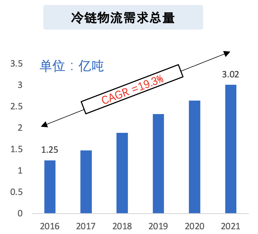 消費升級推動需求提升:隨著居民收入的提高,社區團購、生鮮電商爆發式增長,以及疫情常態化下抗疫物資的運輸等因素的共同推動,冷鏈物流的總需求同樣保持快速提升。