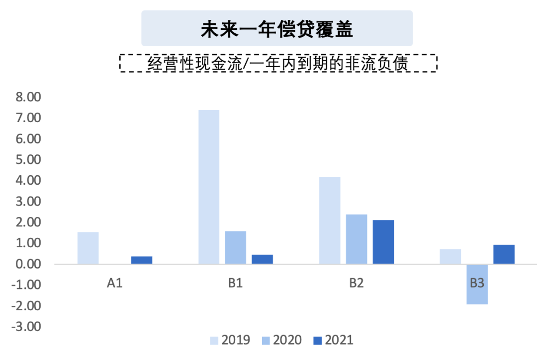 隨著企業加大冷鏈倉儲物流的投資,長期負債占比總體呈走高態勢。同時,隨著借貸規模的增加,企業的還款壓力逐漸增大。2020年由于疫情封控導致物流業務占比較高的企業還款壓力相對較大。
