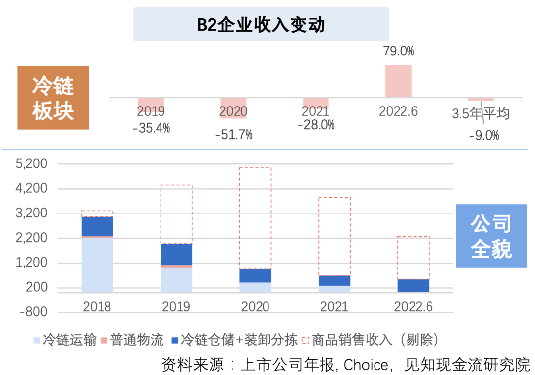 行業內大多數企業在最近三年半的時間里都保持了較為快速的增長,而B2企業過去三年實施轉型,由“倉儲+運輸”轉為倉儲為主,收入的波動較大。企業容易依靠自身資源,通過貿易手段做高收入,這一點同樣值得注意。