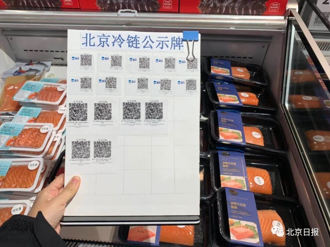 在盒馬鮮生店內逛了一圈,記者發現,不少進口冷鏈食品都已經附上了“北京冷鏈”二維碼。在存放冰鮮魚的冰柜上,放置著一塊“北京冷鏈”公示牌,牌子上用不干膠標簽密密麻麻貼著16個火柴盒大小的二維碼。冰鮮三文魚腩、冰鮮三文魚肉、冰鮮三文魚尾、冰鮮三文魚切片、去皮巴沙魚柳……不同的商品都單獨配備了獨立的二維碼。超市工作人員告訴記者,這些“北京冷鏈”二維碼其實幾天前,就已經提前準備好,張貼或是擺放在了冰柜上。“我們還做了一些改進,比如,最開始的時候,二維碼全是用A4紙打印的,在冰柜上一個挨一個擺一大排,消費者不太方便掃描。后來我們就改成了公示牌這種形式,制作不干膠二維碼標簽,貼在公示牌上,一目了然又便于顧客掃描操作。”記者從市場監管部門了解到,同一個批次的產品只會使用一個二維碼,產品生產批次號具有唯一性。不過,今天上午,記者在位于北三環的華聯精品超市安貞橋店內發現,放置冷凍水產品的冰柜內,雖然有產地越南的凍生黑虎蝦、產地新西蘭的全殼原汁青口貝等多款進口冷鏈食品,但并沒有公示“北京冷鏈”食品追溯二維碼。需要在“北京冷鏈”平臺申請注冊的除了進口冷鏈食品供貨企業之外,還包括商場、超市、網購平臺、餐飲單位等經營單位。記者從北京市市場監管局了解到,從今天“北京市冷鏈食品追溯平臺”正式運行起,對未按照追溯平臺管理要求錄入相關追溯數據的進口冷藏冷凍肉類、水產品,要求做到不采購、不銷售、不使用。