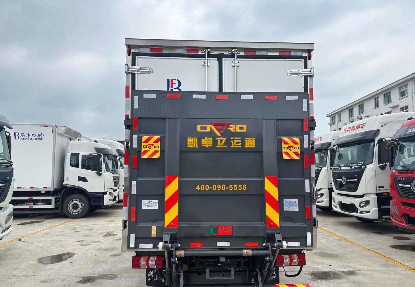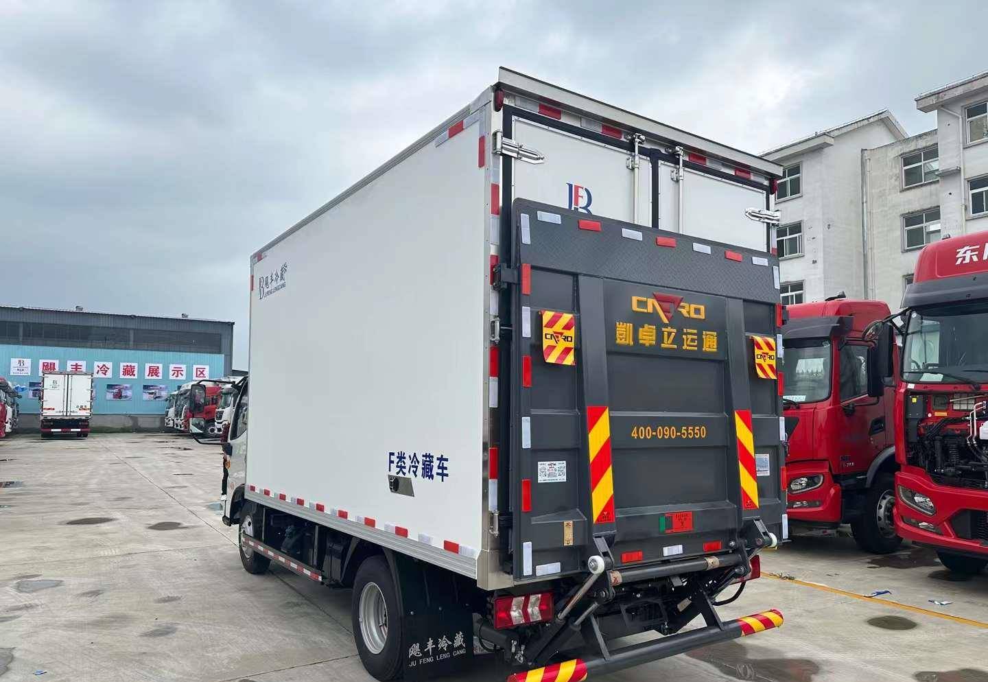 箱體選擇颶豐保溫大箱高度可以做到2米2容積19.5個立方。冷機方面選擇颶豐500制冷機組,溫度可以快速達到零下20度,客戶加裝了一個液壓尾板燕尾版,上下貨物更方便。這樣的配置全款12萬起,有需要了解更多冷藏車,歡迎關注私信我。