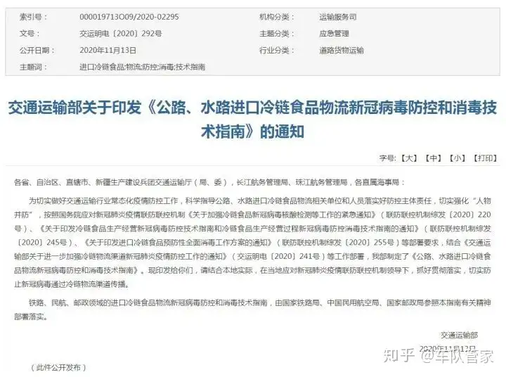 近日,交通運輸部印發了《公路、水路進口冷鏈食品物流新冠病毒防控和消毒技術指南》(簡稱《指南》),明確進口冷鏈食品裝卸運輸過程防控要求和消毒要求、從業人員安全防護要求及應急處置要求。