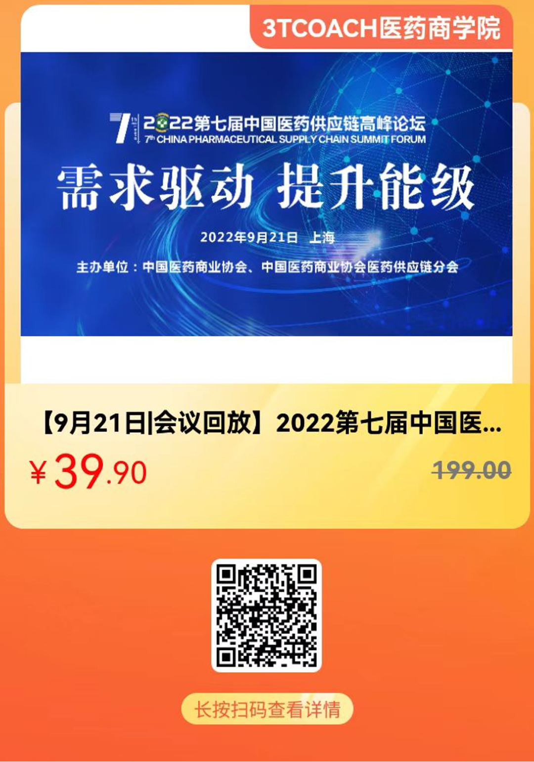2022年9月21日第七屆中國醫藥供應鏈高峰論壇有國內醫藥供應鏈數字化、智能化非常干貨、專業的內容分享,歡迎感興趣同行掃碼觀看——
