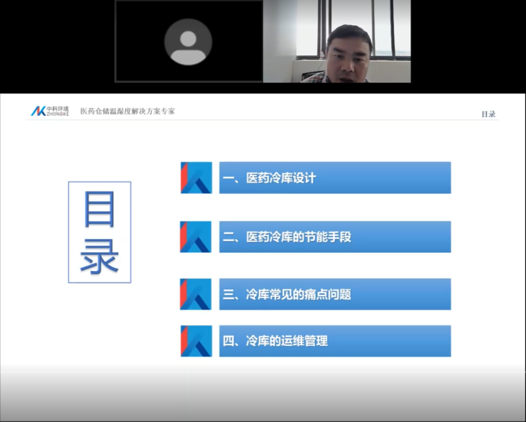課程第一部分由中科(廣東)環境科技有限公司聯合創始人黎澤明老師主講,黎澤明老師是醫藥倉儲冷庫技術方面的專家,在醫藥冷庫設計、節能等方面經驗豐富。圍繞醫藥冷庫設計、醫藥冷庫的節能手段、冷庫常見的痛點問題和冷庫運維管理等方面,他進行了專業探討。