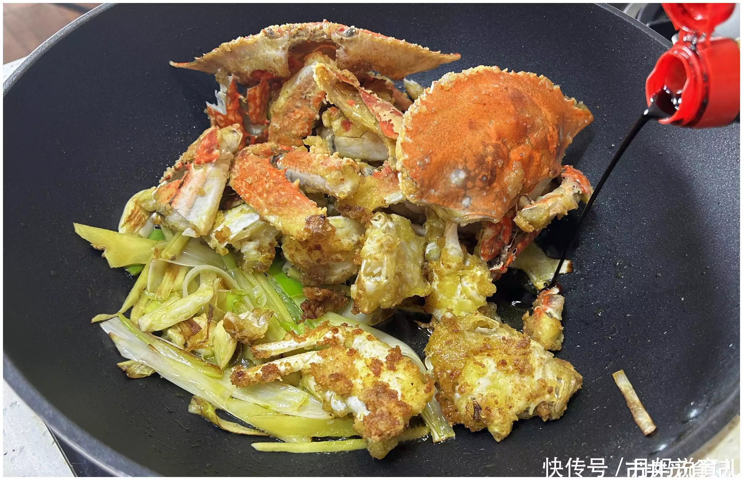 有些食材是很挑烹飪方法的,如這些冰凍的梭子蟹,你去清蒸的話怎么做都難吃,但換成蔥姜炒或者辣炒,味道就非常好了,家里有條件的話,這些梭子蟹裹上淀粉油炸以下味道會更香,注意這道菜是不用放鹽的,口味輕的話最后炒的時候醬油也不建議放,略微放一些蠔油增加鮮味就行,油炸過的食物會很干,注意最后要加一點水燜一下,讓味道融合開,吃起來滋味更佳。