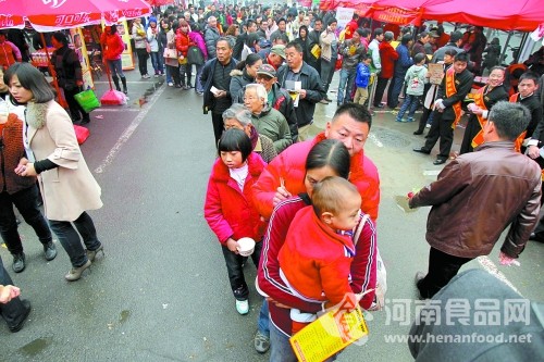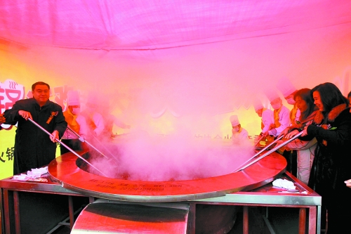 【導讀】直徑3.15米、深0.7米、可容納近3噸高湯的中原最大火鍋“坐鎮”現場,為3000多名市民提供了一次免費品嘗的盛宴。
