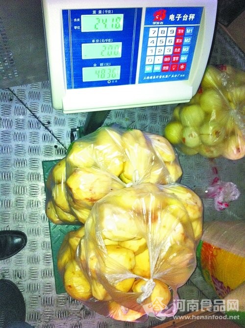 在鄭州至烏魯木齊的列車上,配送的糧肉蔬菜有20多種,記者隨機挑了其中的土豆和洋蔥進行稱重。料單上顯示,此次配送的土豆為30公斤,洋蔥10公斤。工作人員劉師傅先把送來的土豆放到電子秤上一稱,總重為24.18公斤。再對洋蔥稱重,重量為8.1公斤。