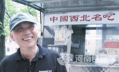 餐車老板叫謝云峰,河南洛陽人。來美國兩年,老謝先后輾轉幾個州,跟著工程隊做過裝修,在中餐館里學過廚,終于在47歲這年在紐約“自立門戶”:在流動餐車上開起了專屬于他的“中國西北名吃”。