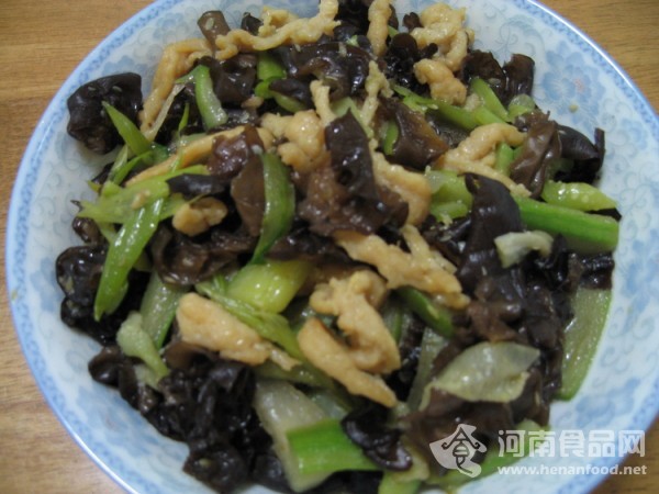 材料:大米50克、火腿35克、絲瓜500克、云耳(即黑木耳)25克、鮮草菇50克、芹菜20克、生姜絲少許。